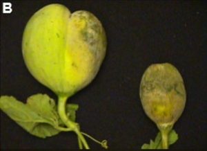 - frutos inmaduros de cantalupe infectados por el hongo.