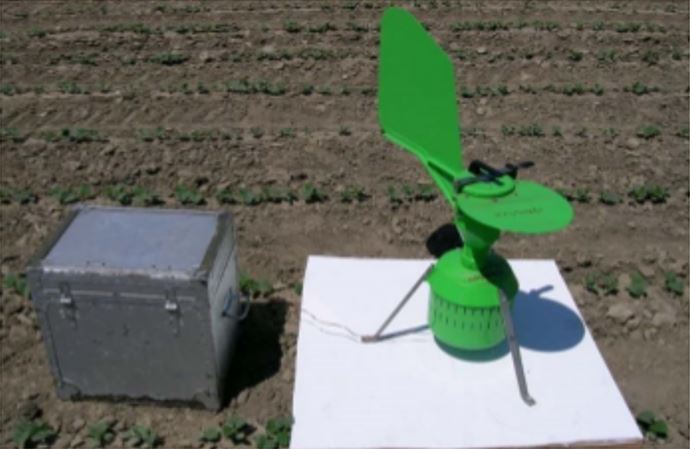 Una trampa de esporas usada para el monitoreo de las esporas del añublo lanoso